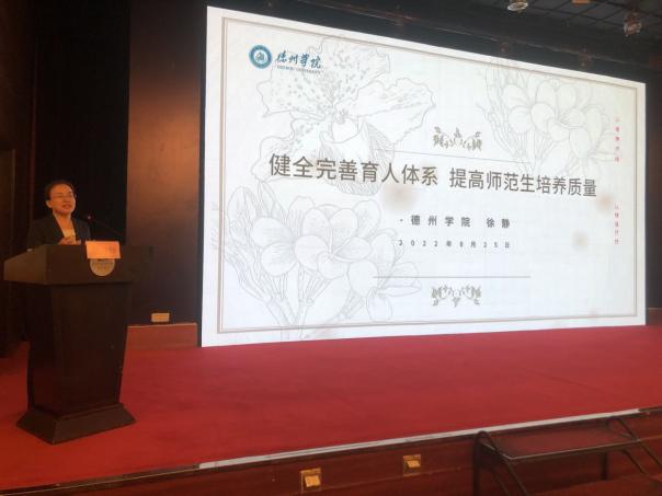 会议邀请4所高校作典型经验介绍。德州学院做为其中一所高校,由副校长徐静以“健全完善育人体系 提高师范生培养质量”为题,从加强师范教育顶层设计是做好师范类专业认证工作的前提、聚焦师范生核心素养培养是做好师范类专业认证工作的关键、强化质量文化和基础条件建设是做好师范类专业认证工作的保障、推动专业内涵建设是做好师范类专业认证工作的目的四方面,充分展现我校“以德铸师魂,以精强师技”的师范办学特色,积极构建的常态化工作机制,扎实推进的师范专业建设,全面提高的师范生培养质量。