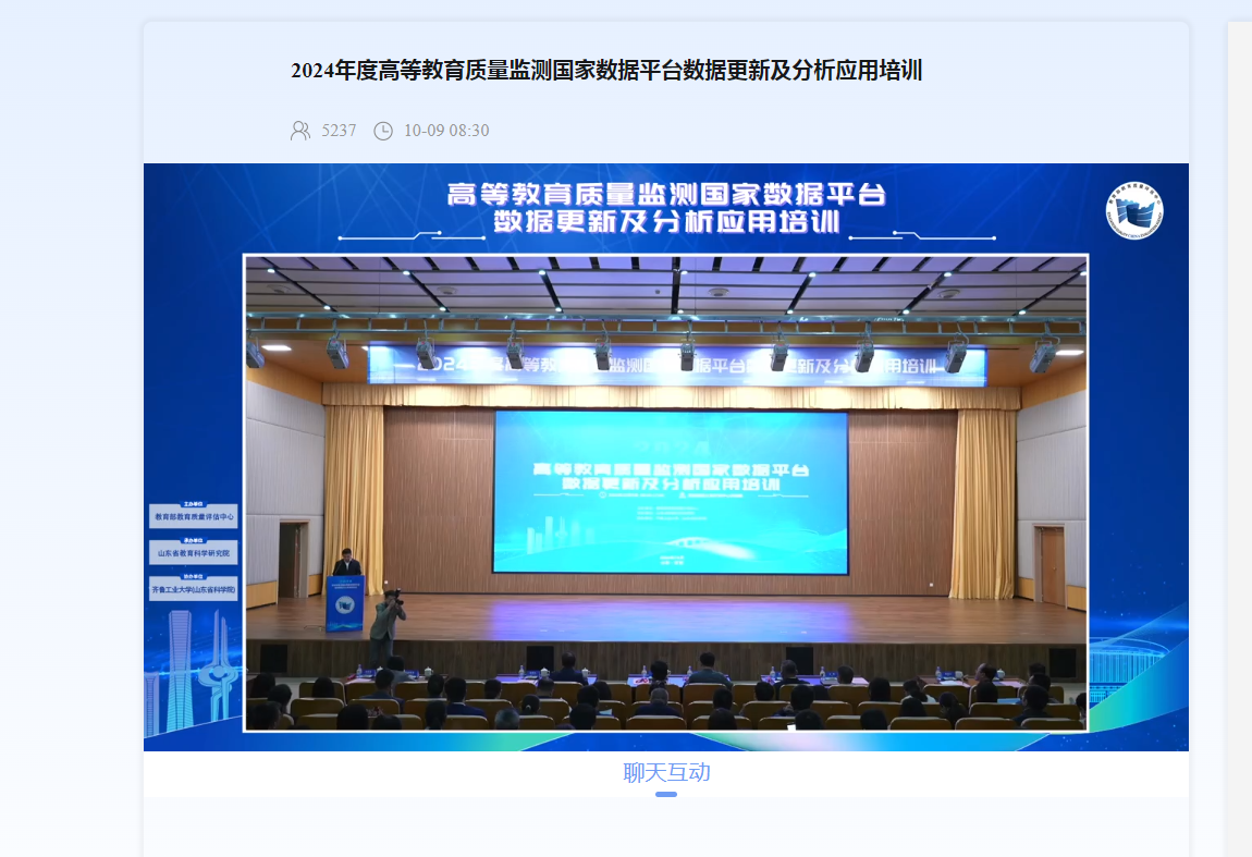 10月9日,2024年度高等教育质量监测国家数据平台数据更新及分析应用培训会在济南国家超级计算中心举办。德州学院亚洲精品无码久久久负责人现场参加了培训,学校参与数据采集工作的相关部门参加了线上培训。